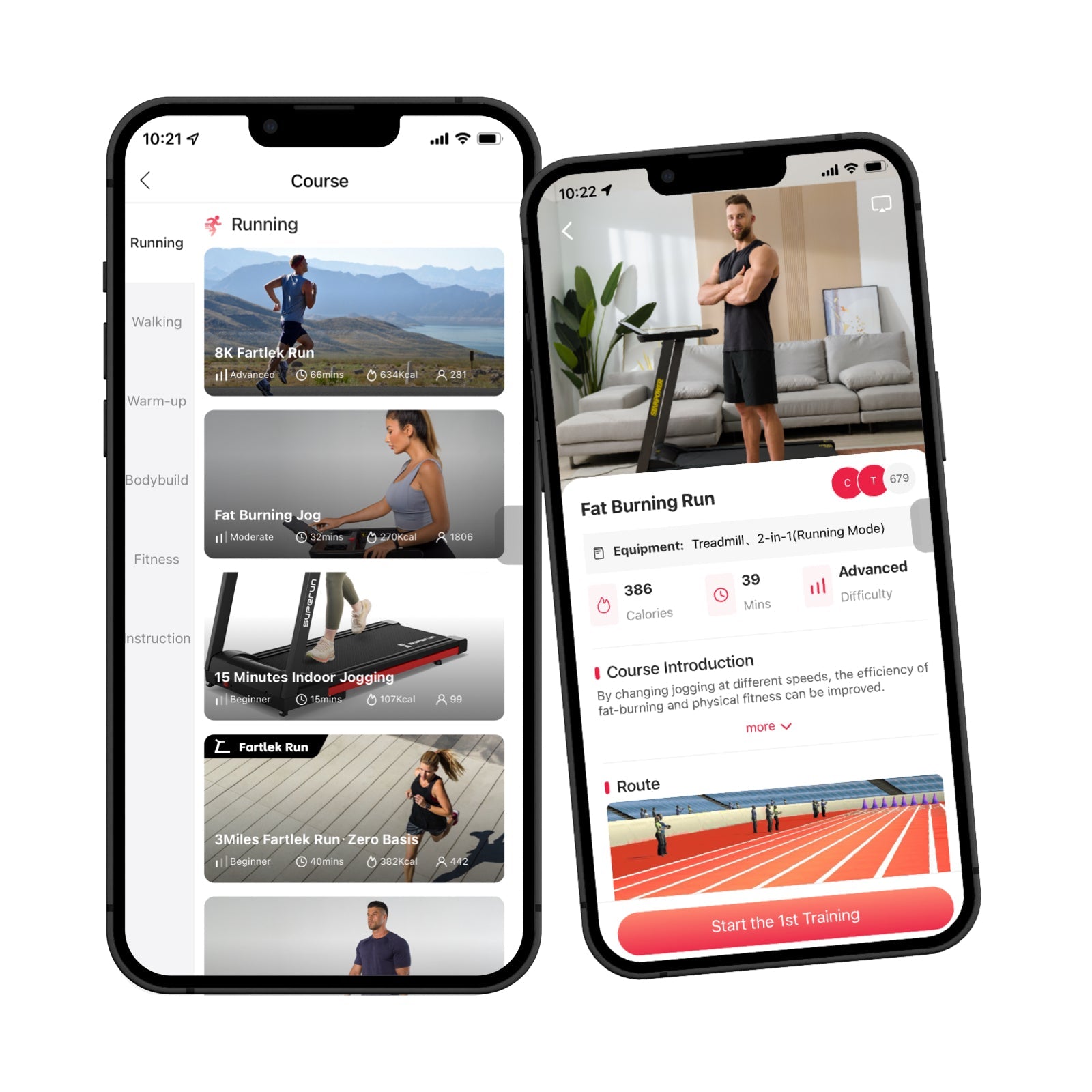 Corri con un coach del corso e regoliamo automaticamente la tua velocità nel percorso. Per coloro che non hanno attrezzature, offriamo anche esercizi speciali per bruciare i grassi.