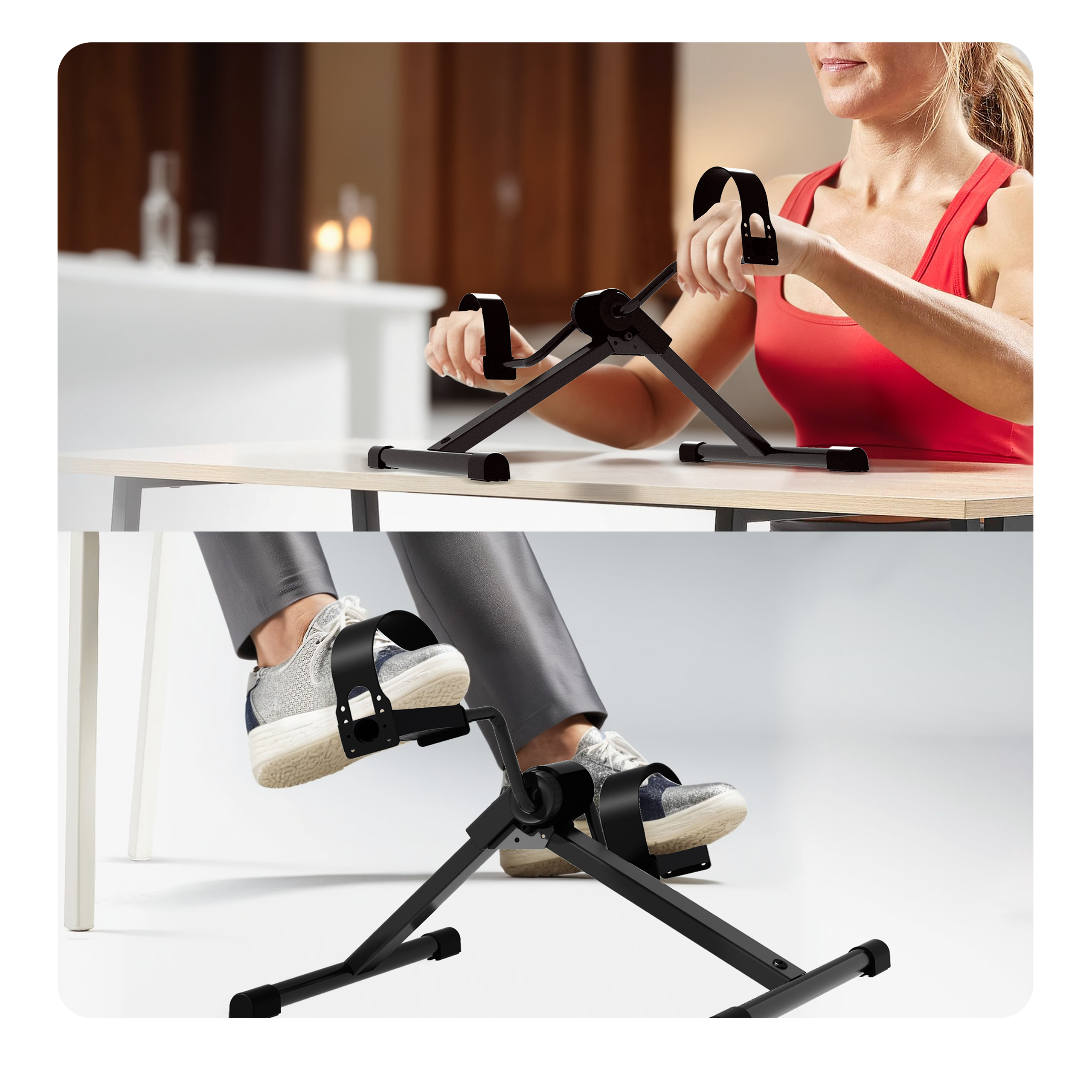 【Attrezzo per esercizi da posizionare sotto la scrivania per l'allenamento a casa】: Mantieniti attivo mentre lavori o guardi la TV con questo compatto attrezzo ginnico a pedale. Si adatta perfettamente sotto un tavolo, permettendoti di bruciare calorie e mantenerti in forma. Quando non lo usi, puoi semplicemente ripiegarlo per riporlo facilmente.