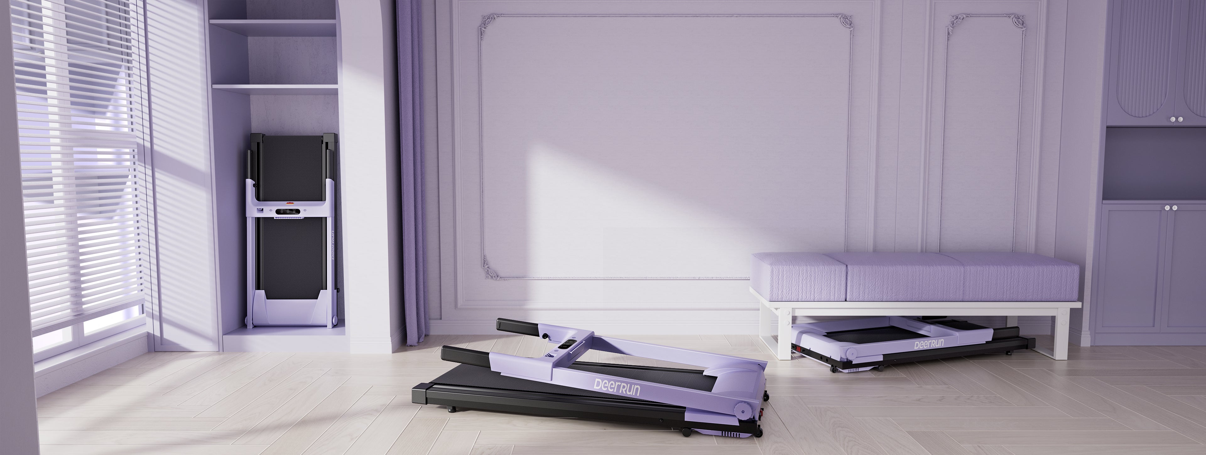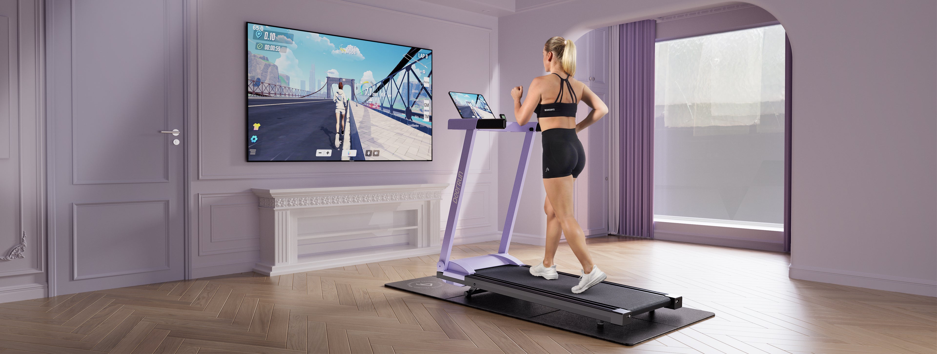 DeerRun A1 Urban-Tapis roulant pieghevole intelligente con pendenza del 6% e NFC | 150 kg, 16 km/h, Viola