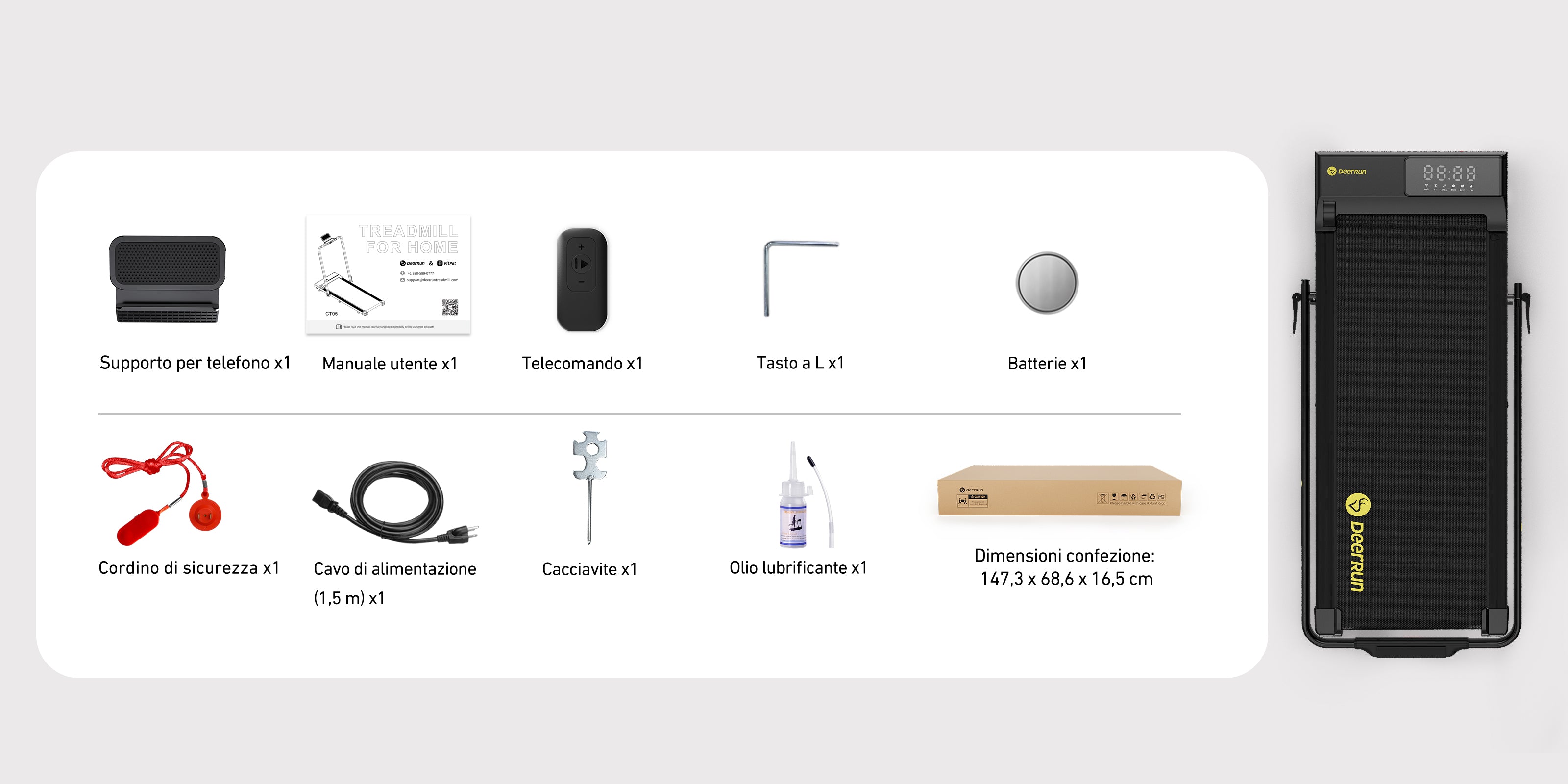 Il livello di rumore durante il funzionamento è inferiore a 65 decibel, paragonabile a quello degli elettrodomestici convenzionali come una lavatrice. Questo tapis roulant è quindi ideale per l'uso a casa o in ufficio.