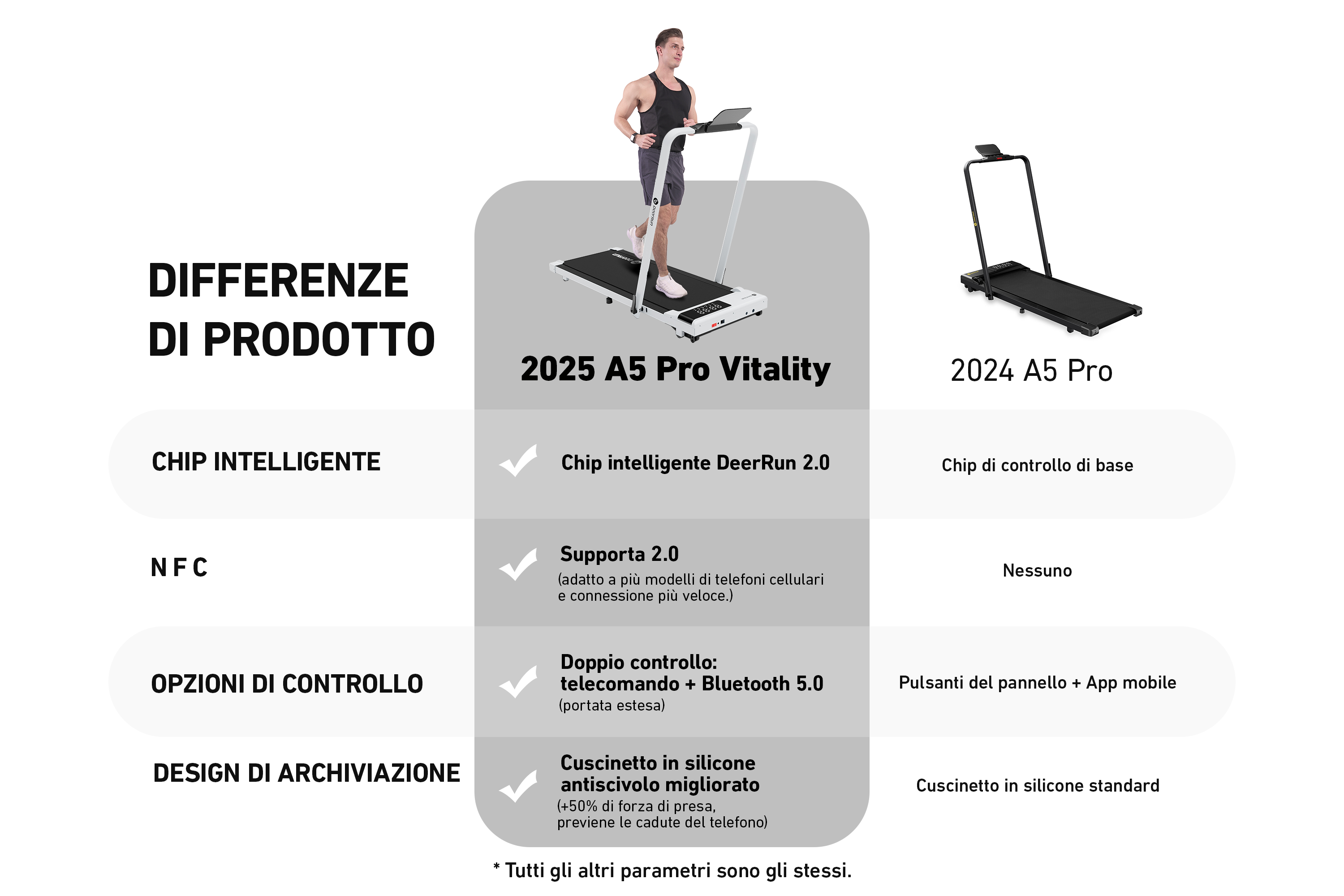 DeerRun A5 Pro Energie-2025 Smartes 2-in-1 Tapis roulant | Chip di aggiornamento e supporto NFC con capacità di carico di 145 kg e telecomando