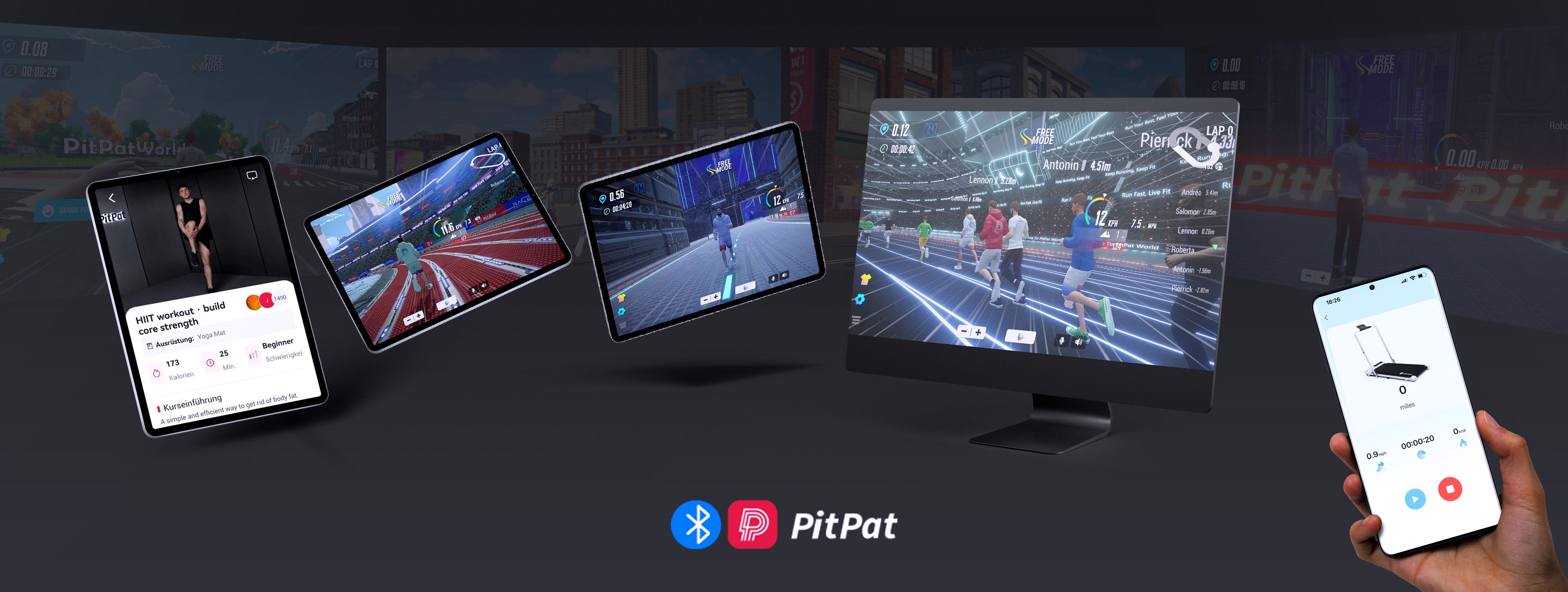 Collegati tramite l'esclusiva PitPat-APP e accedi a corsi di formazione specialistici, monitoraggio dei dati e giochi di corse multigiocatore online per un'esperienza di corsa indoor completamente immersiva.