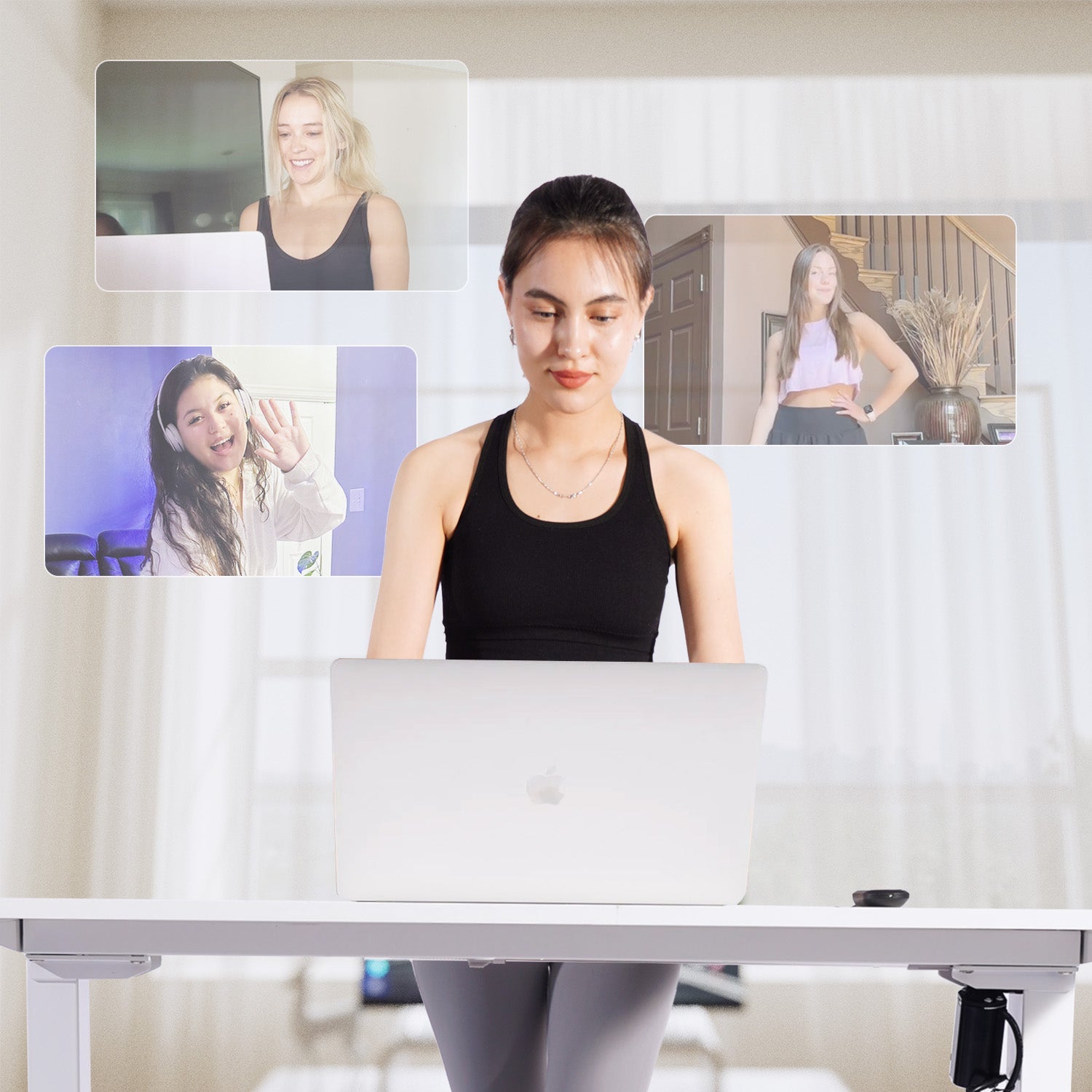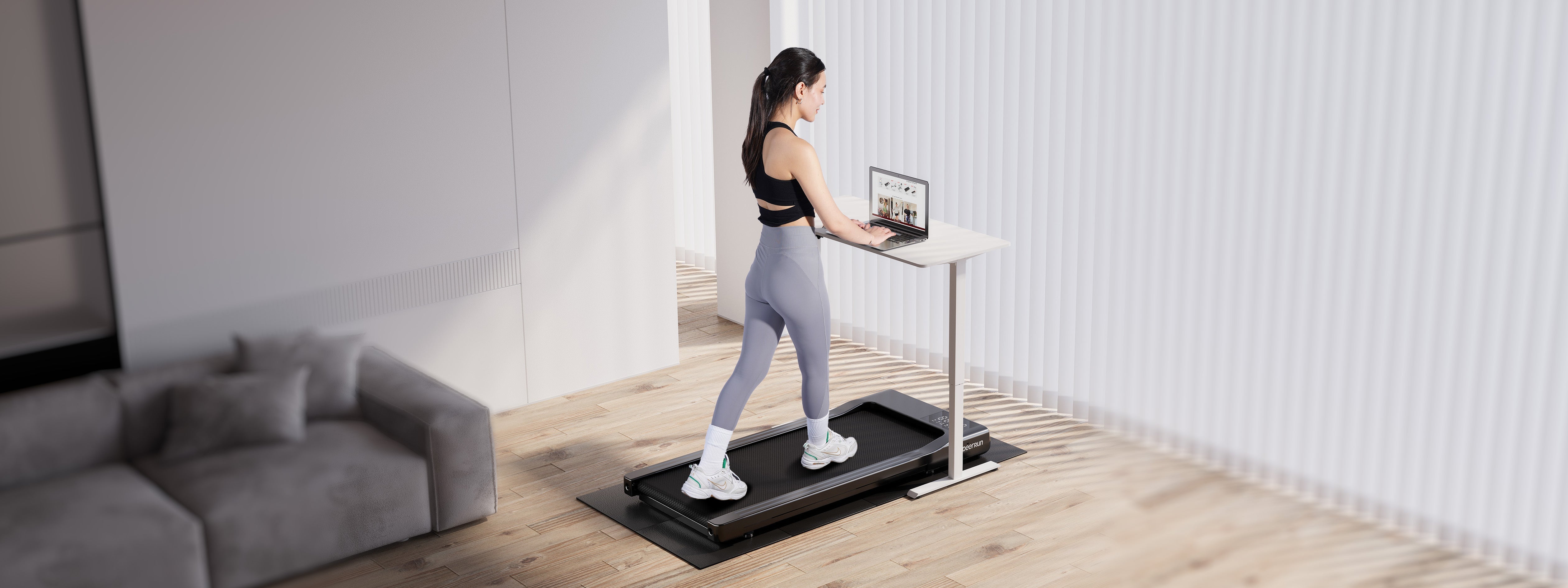 Le tapis roulant DeerRun Q1 Classic Plus Smart Walk s'associe parfaitement au bureau debout DeerRun, créant une configuration de bureau à domicile compacte et flexible.
