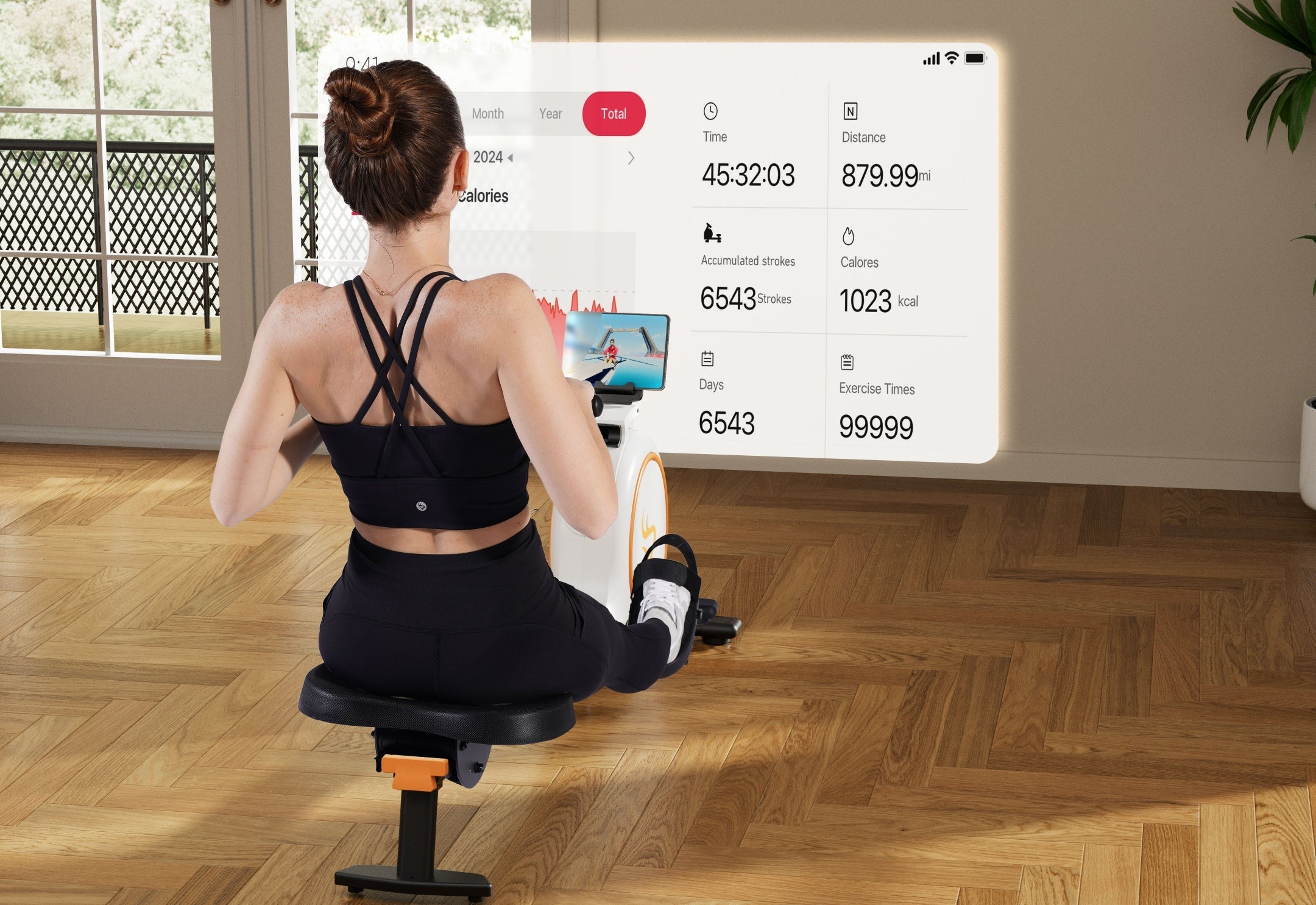 Scopri il canottaggio gioioso con RW600! Progettato per le donne che cercano un allenamento divertente e delicato che tonifica il corpo ed eleva lo spirito!