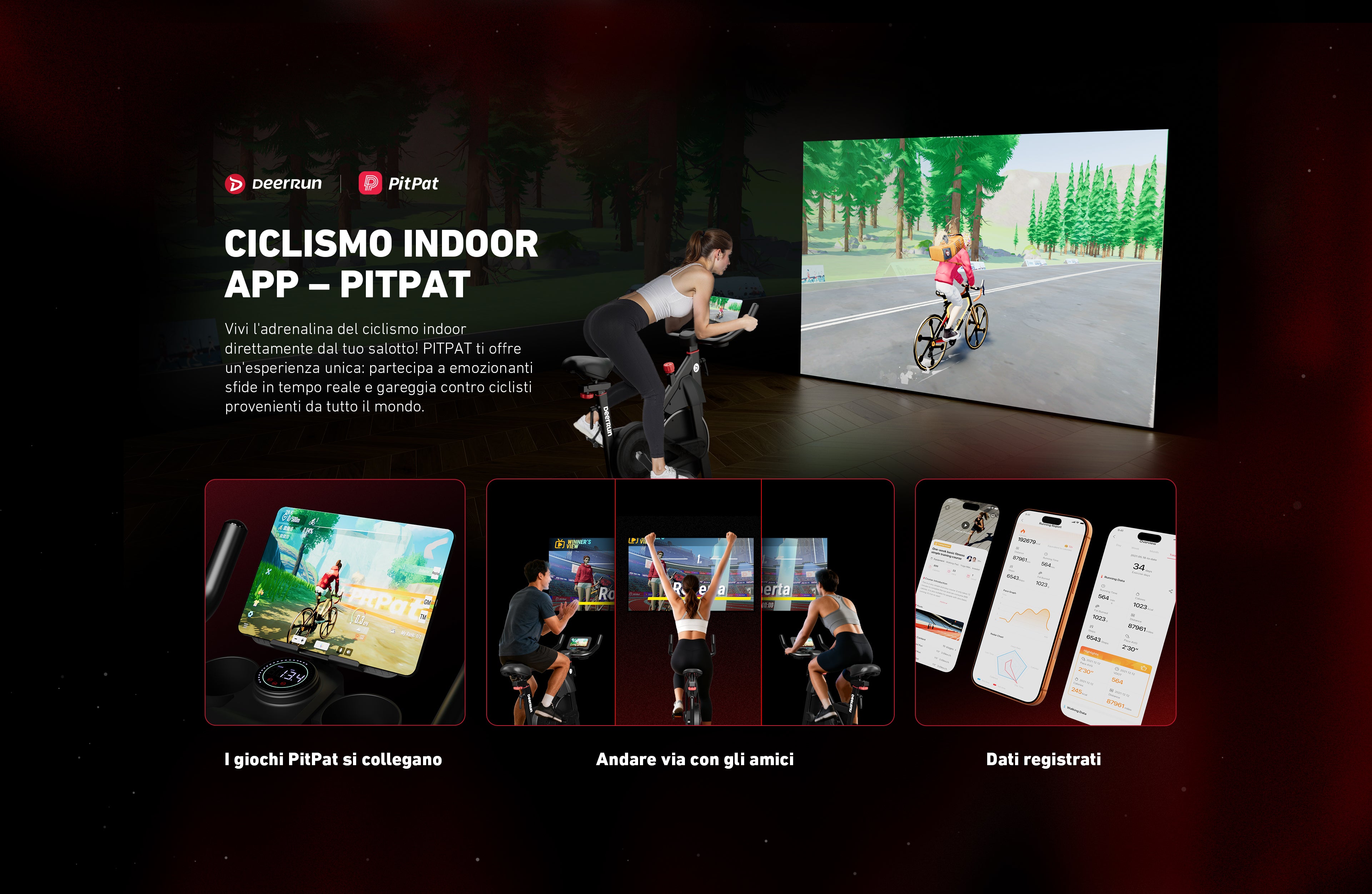 - PitPat-APP offre: Tieni traccia dei tuoi dati, partecipa a corsi di formazione, partecipa a gare virtuali, incontra amici online