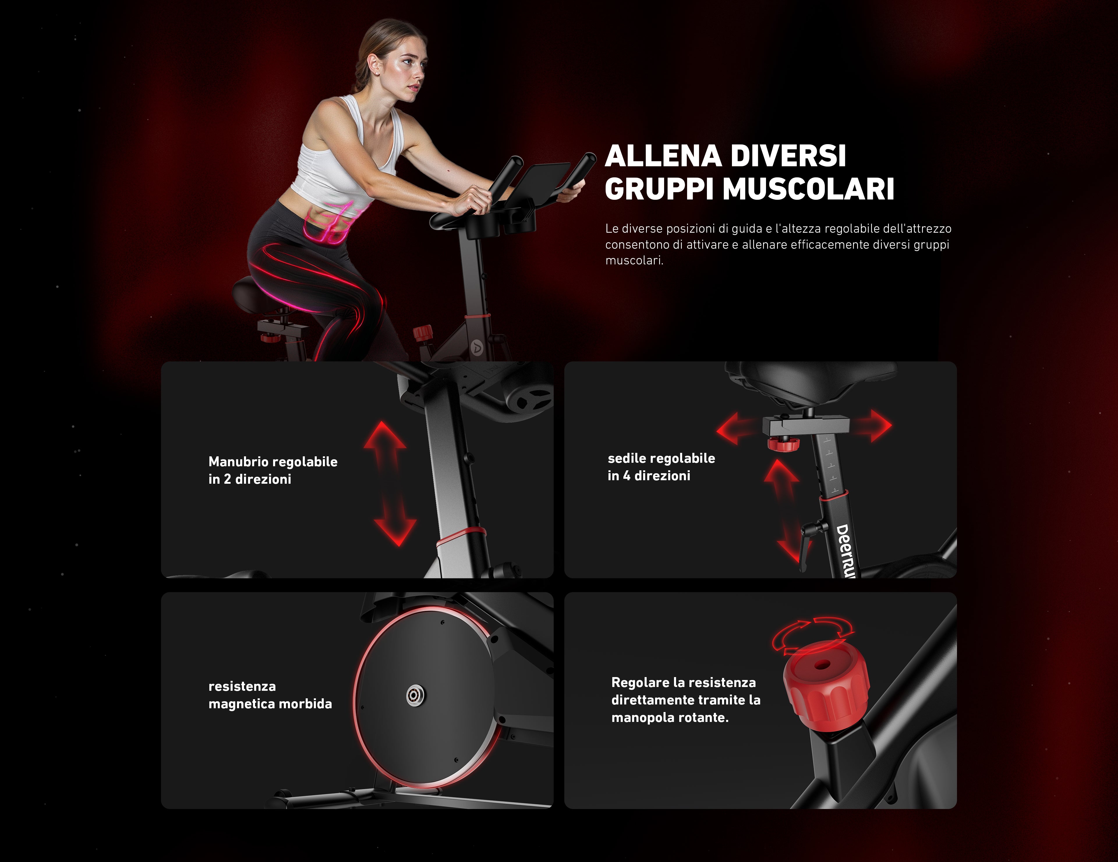 DeerRun S500 Pro King Size Cyclette da interno per persone alte, 32 livelli di resistenza magnetica, display LED