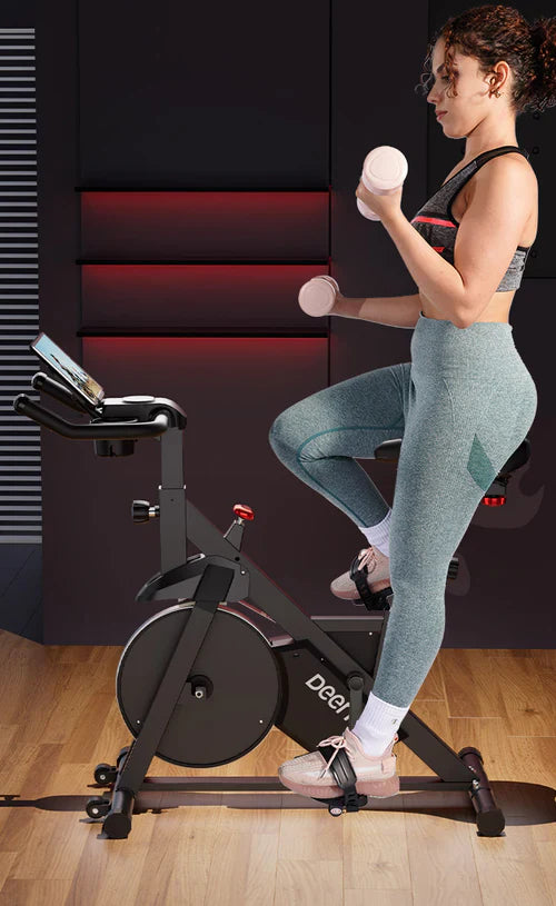 DeerRun S500 Smart bike da interno nera con resistenza magnetica regolabile, cintura silenziosa e app PitPat