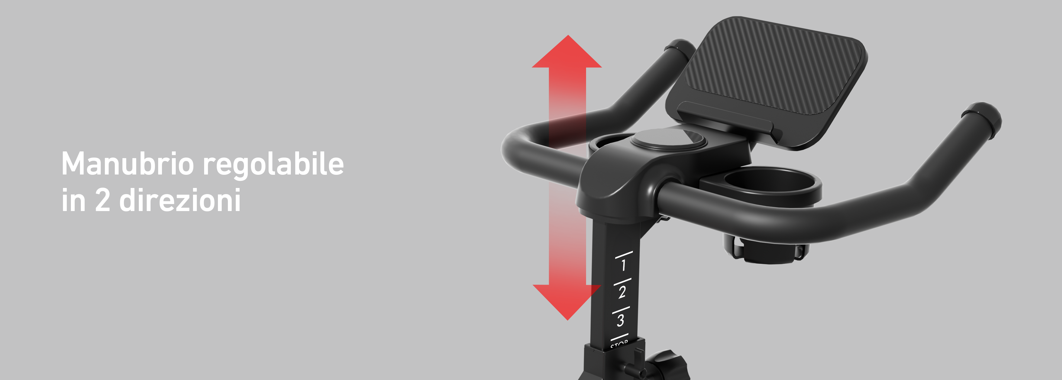 Sperimenta il massimo controllo con il manubrio regolabile in 2 direzioni, che garantisce una presa comoda in ogni pedalata. L'elegante display LED ti tiene informato, mostrando parametri importanti come tempo, velocità e calorie bruciate in tempo reale.